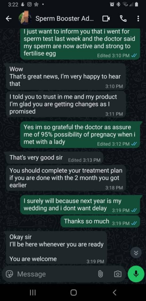 My chest sank. Low sperm count. Poor movement. Infection I didn’t even know I had. That night, my wife cried quietly beside me. I pretended to sleep… but inside, I was broken. I felt ashamed. Angry. Less than a man.