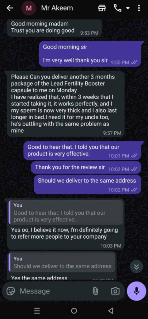 You would easily spend ₦150,000+ — with no guarantee. But we decided to make this AFFORDABLE so no man misses his chance of becoming a father. Instead of paying ₦50,000 for one bottle, we will give you 2 bottles plus free infection flusher for only